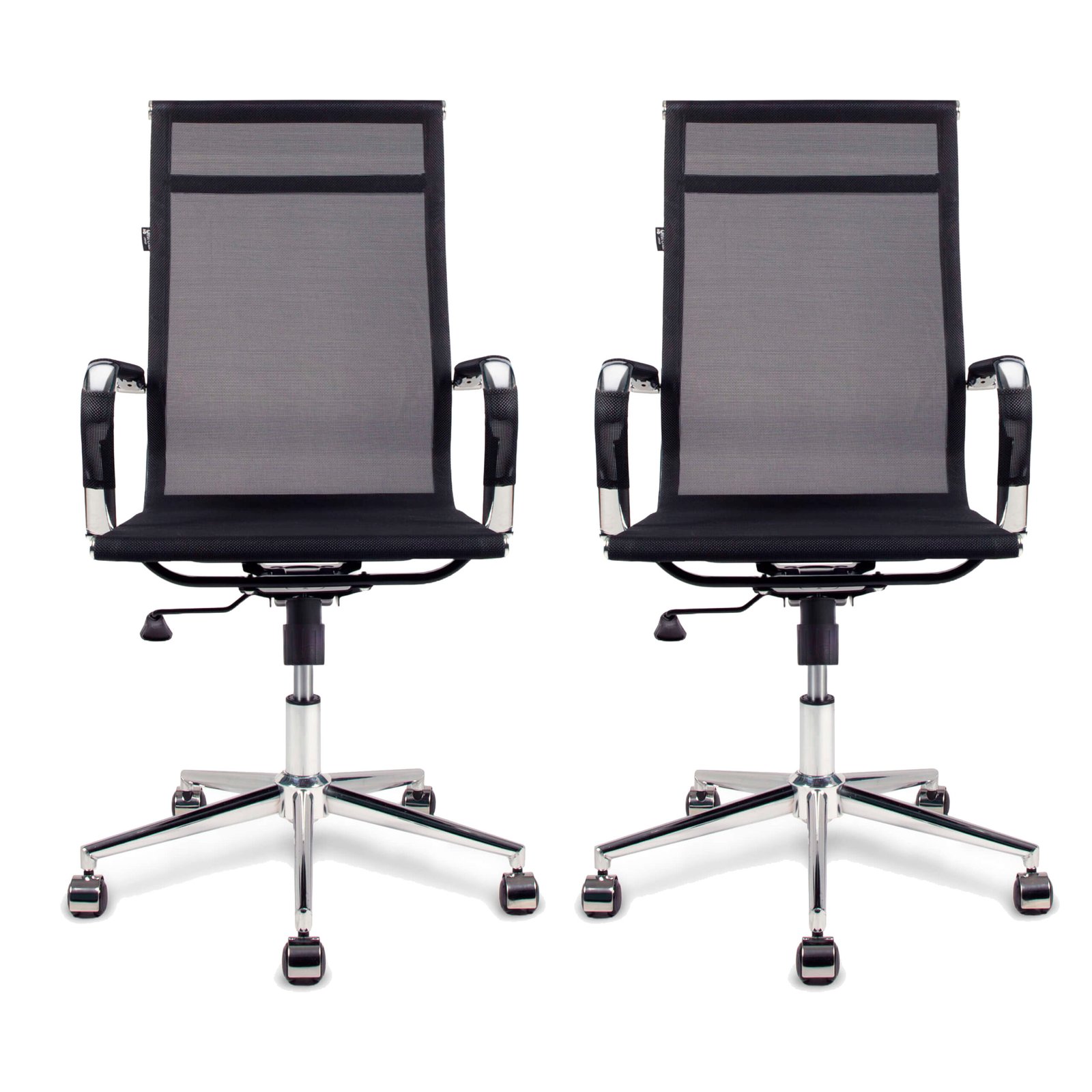 Conjunto de 2 Cadeiras Presidente Giratórias Esteirinha Charles Eames Preta Mesh