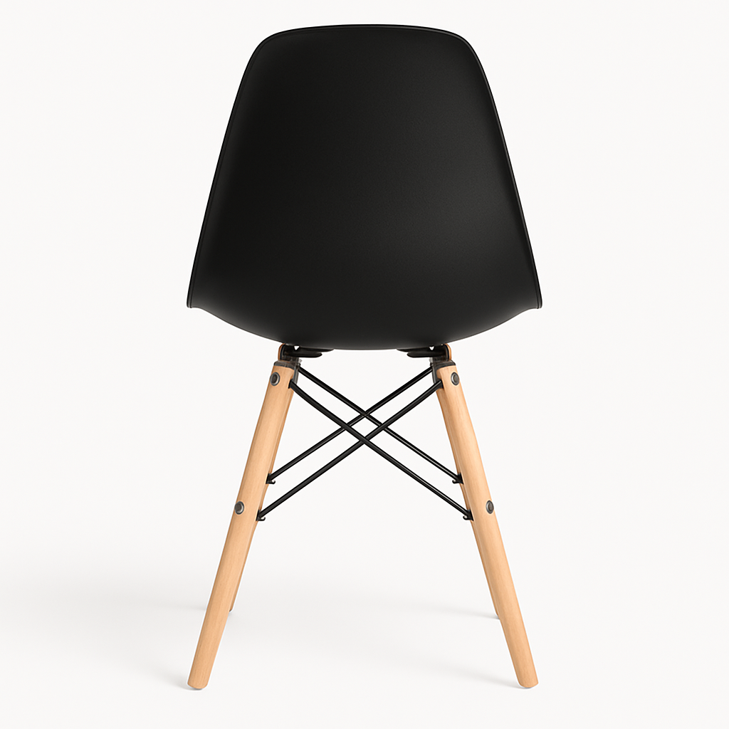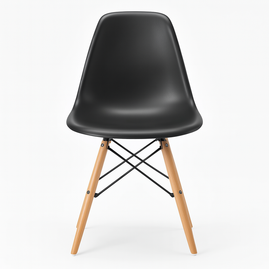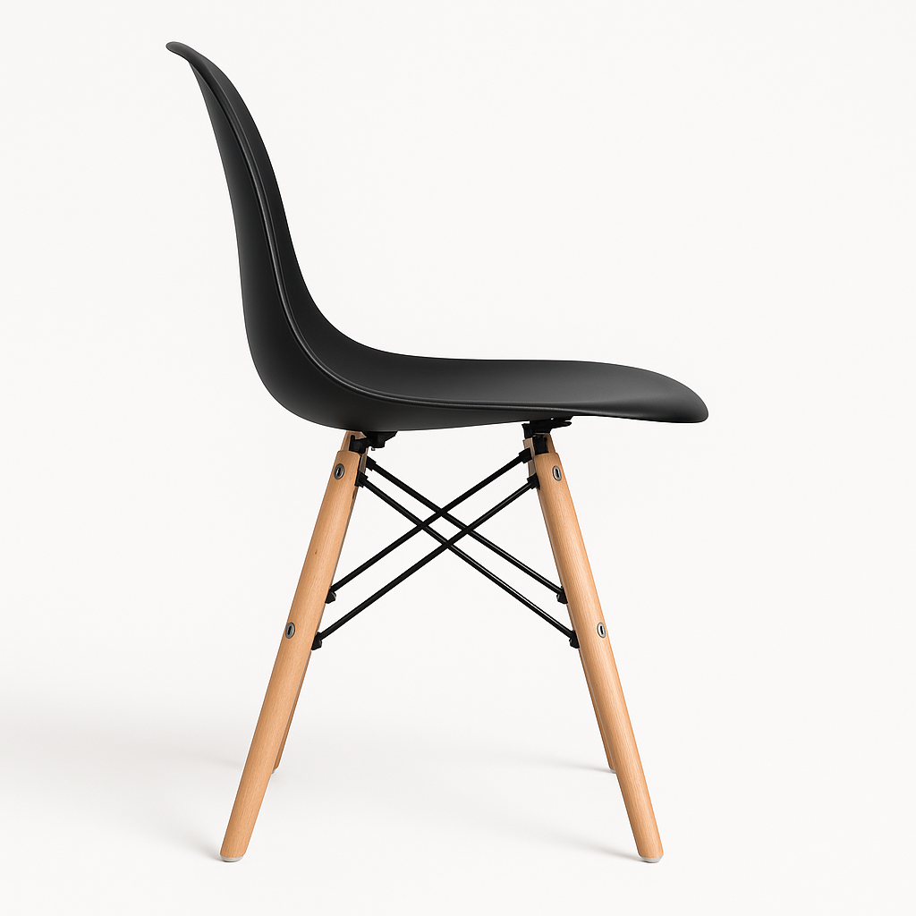 Cadeira de design icônico inspirada na linha Eames, com assento ergonômico em polipropileno e base “Eiffel” em madeira de faia e armação metálica. Ideal para salas de jantar, home offices, escritórios ou ambientes corporativos que buscam aliar conforto, resistência e estilo contemporâneo.
