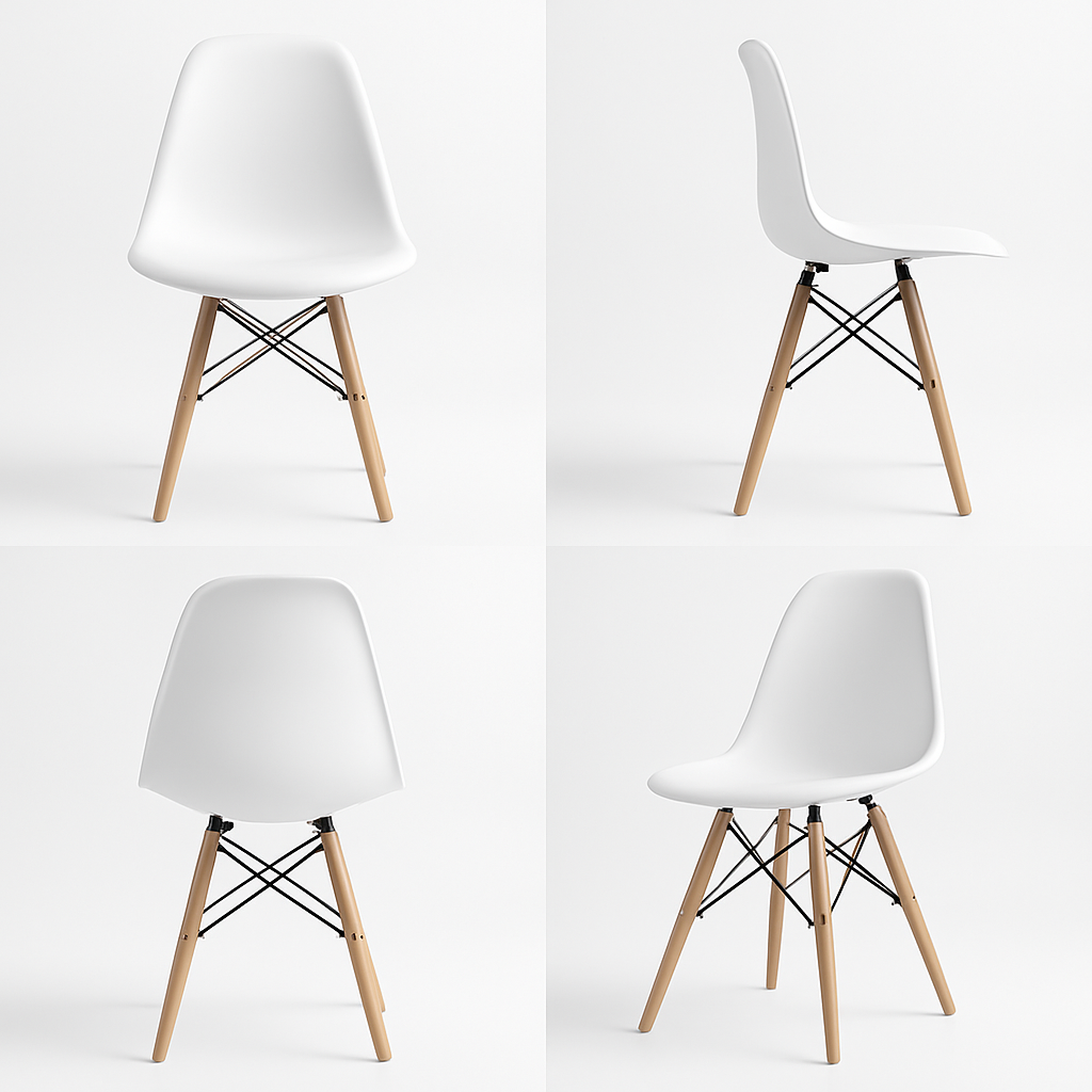 - Design Atemporal: Assento com curvas suaves, inspirado nas clássicas cadeiras Eames.