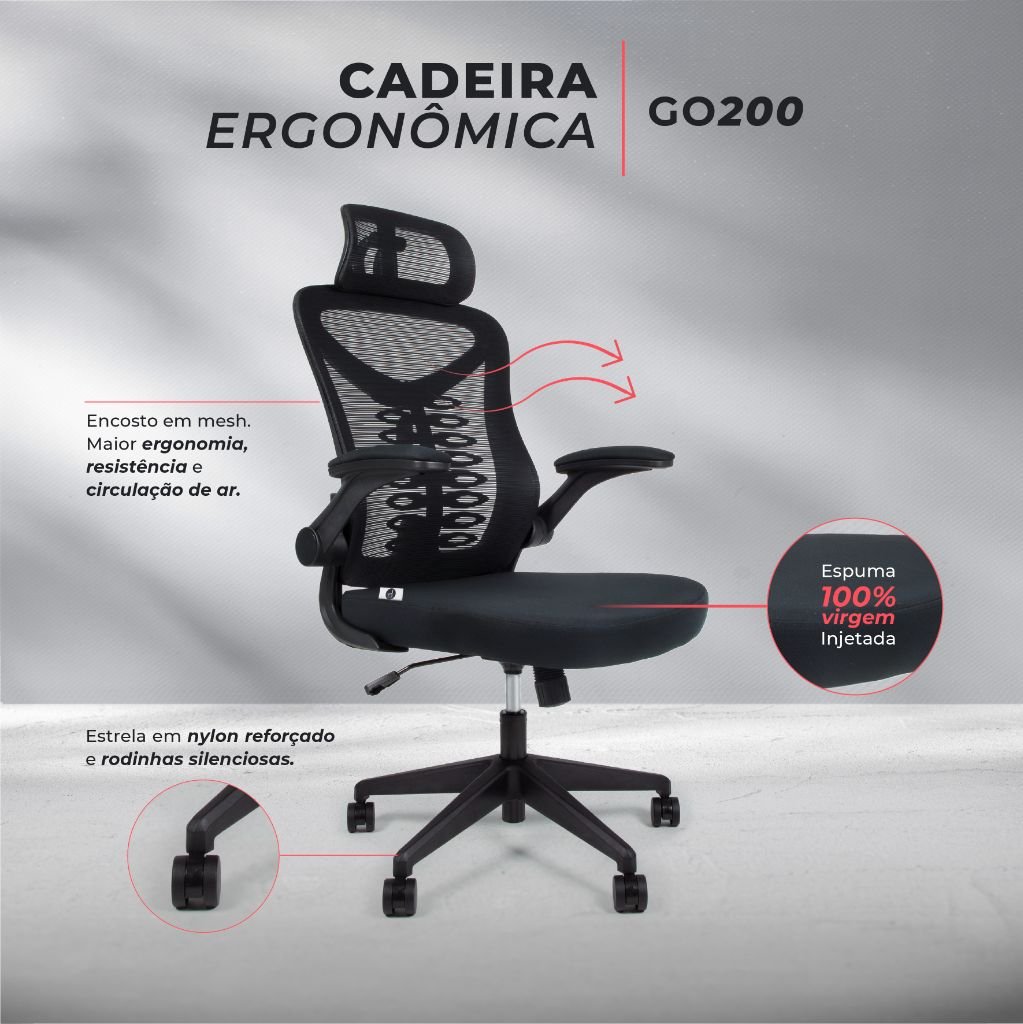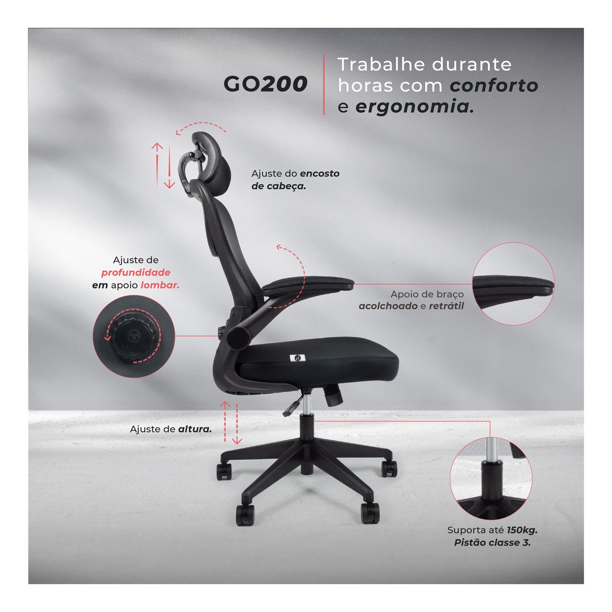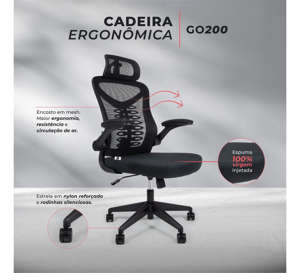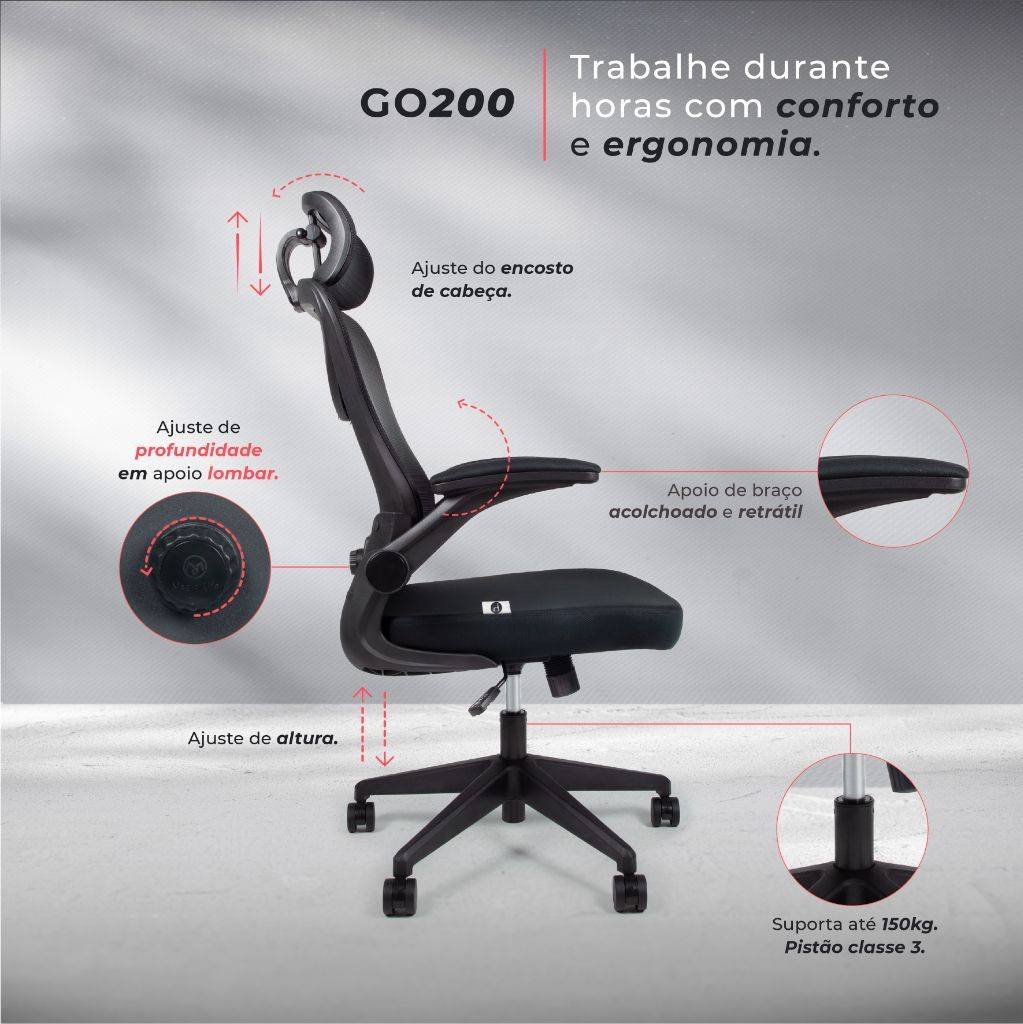 Cadeira de Escritório Ergonômica Gogo Premium Chair GO200 – Preta