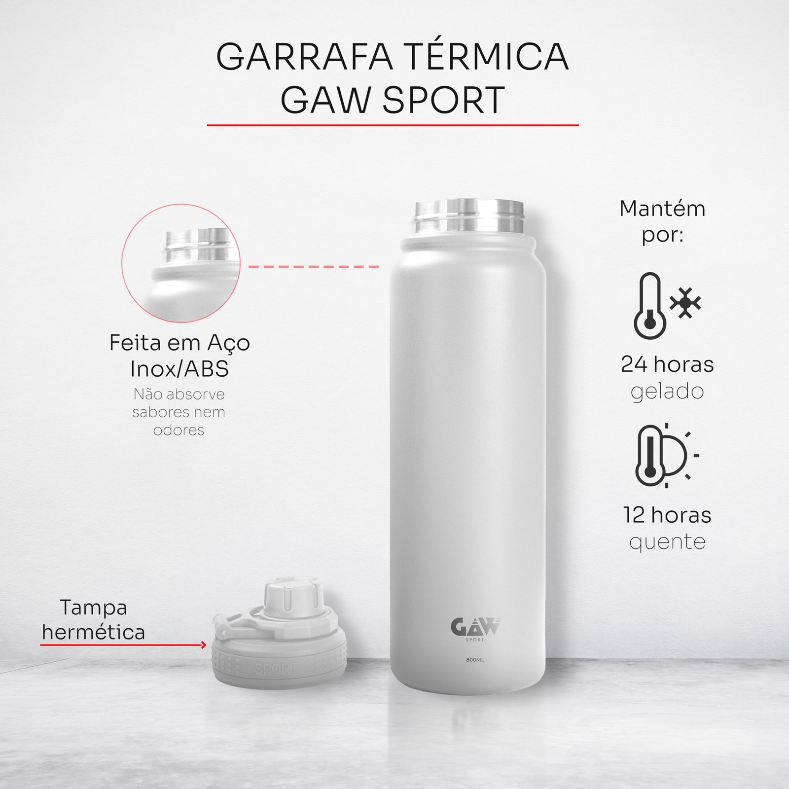 A garrafa térmica da GAW Sport combina engenharia avançada com materiais de alta qualidade para oferecer desempenho superior em conservação térmica. Projetada para atender às demandas de atletas e entusiastas de atividades ao ar livre, esta garrafa é um exemplo de inovação e funcionalidade