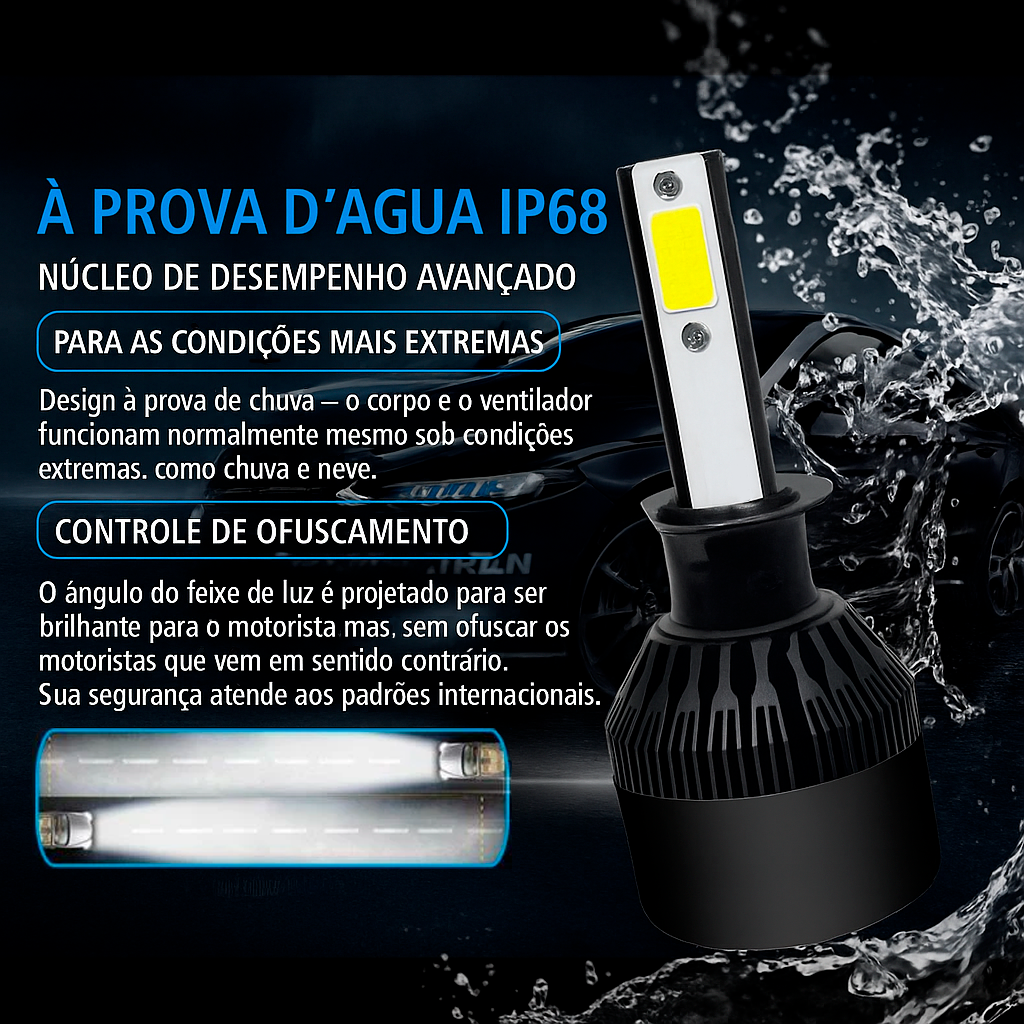 A Ultra LED CST 5ª Geração entrega 8000 lumens reais, com temperatura de cor de 6000K (branco frio), proporcionando uma visibilidade superior e moderna ao seu veículo.
