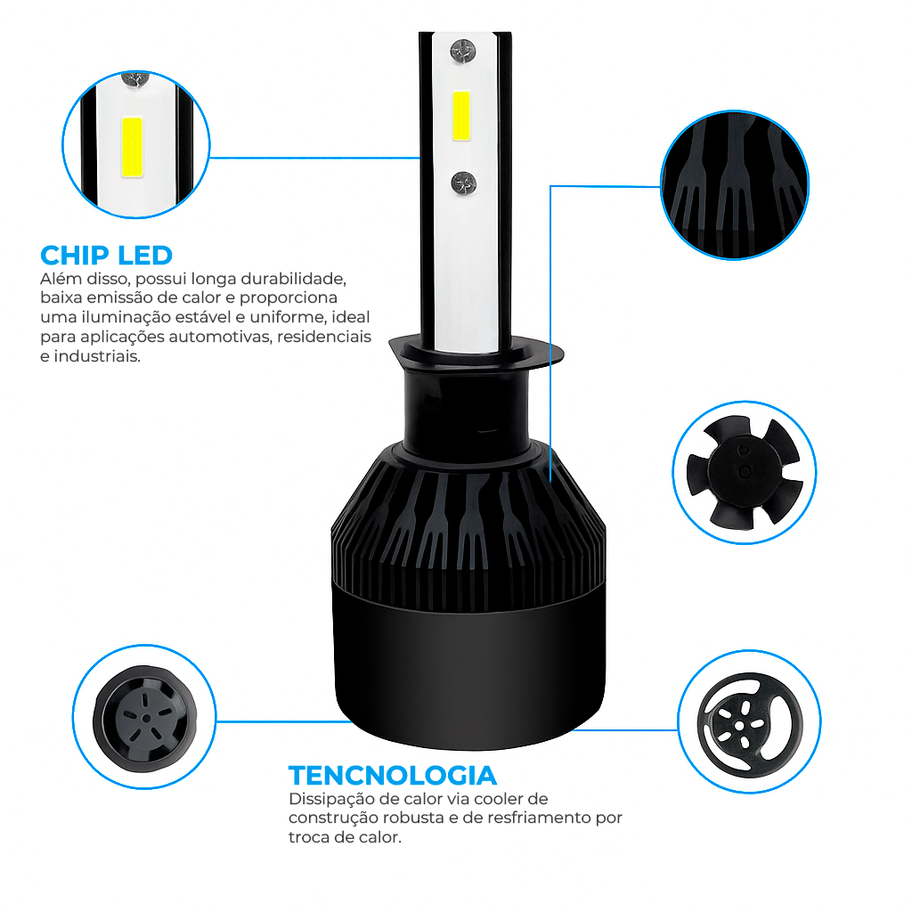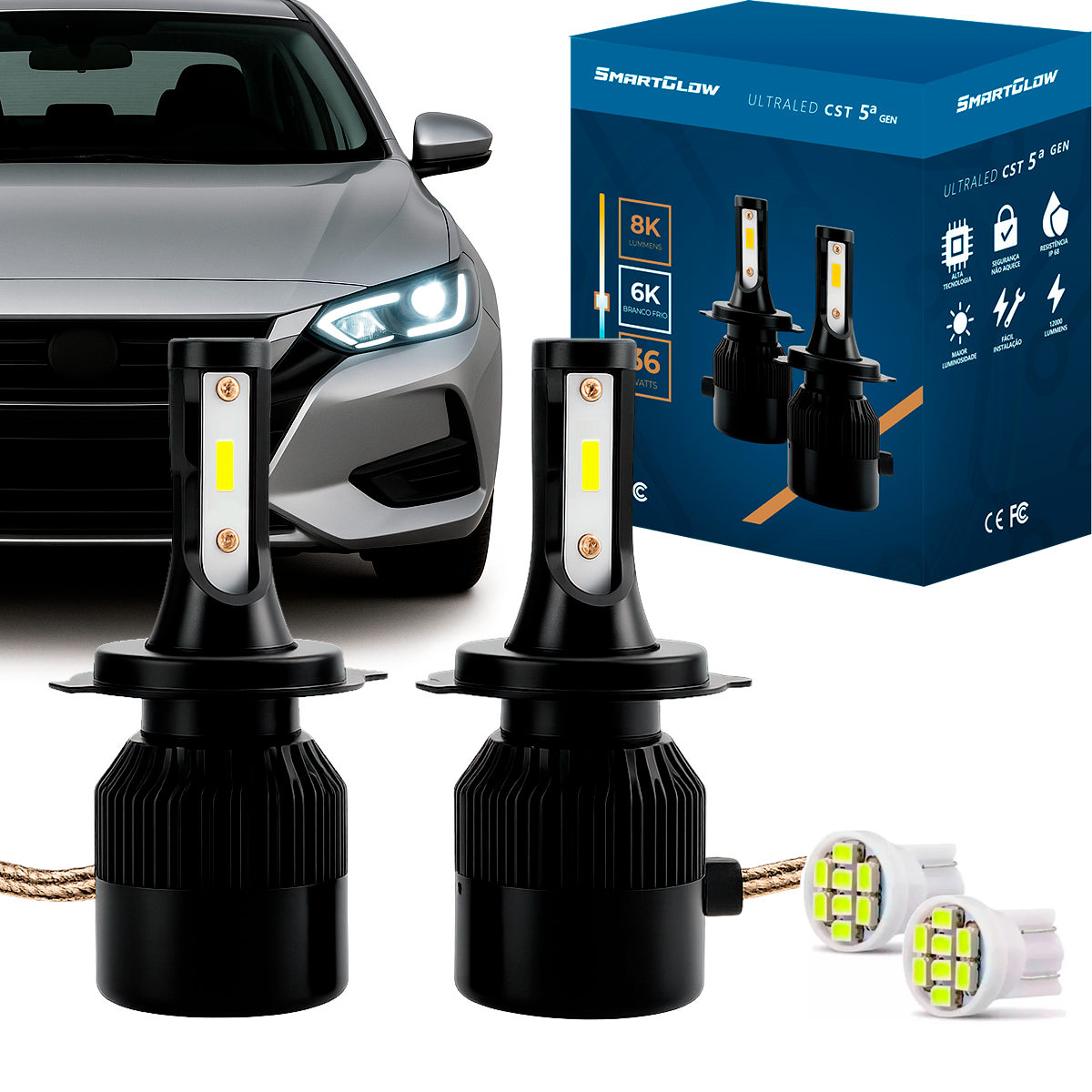 A Ultra LED CST 5ª Geração entrega 8000 lumens reais, com temperatura de cor de 6000K (branco frio), proporcionando uma visibilidade superior e moderna ao seu veículo.