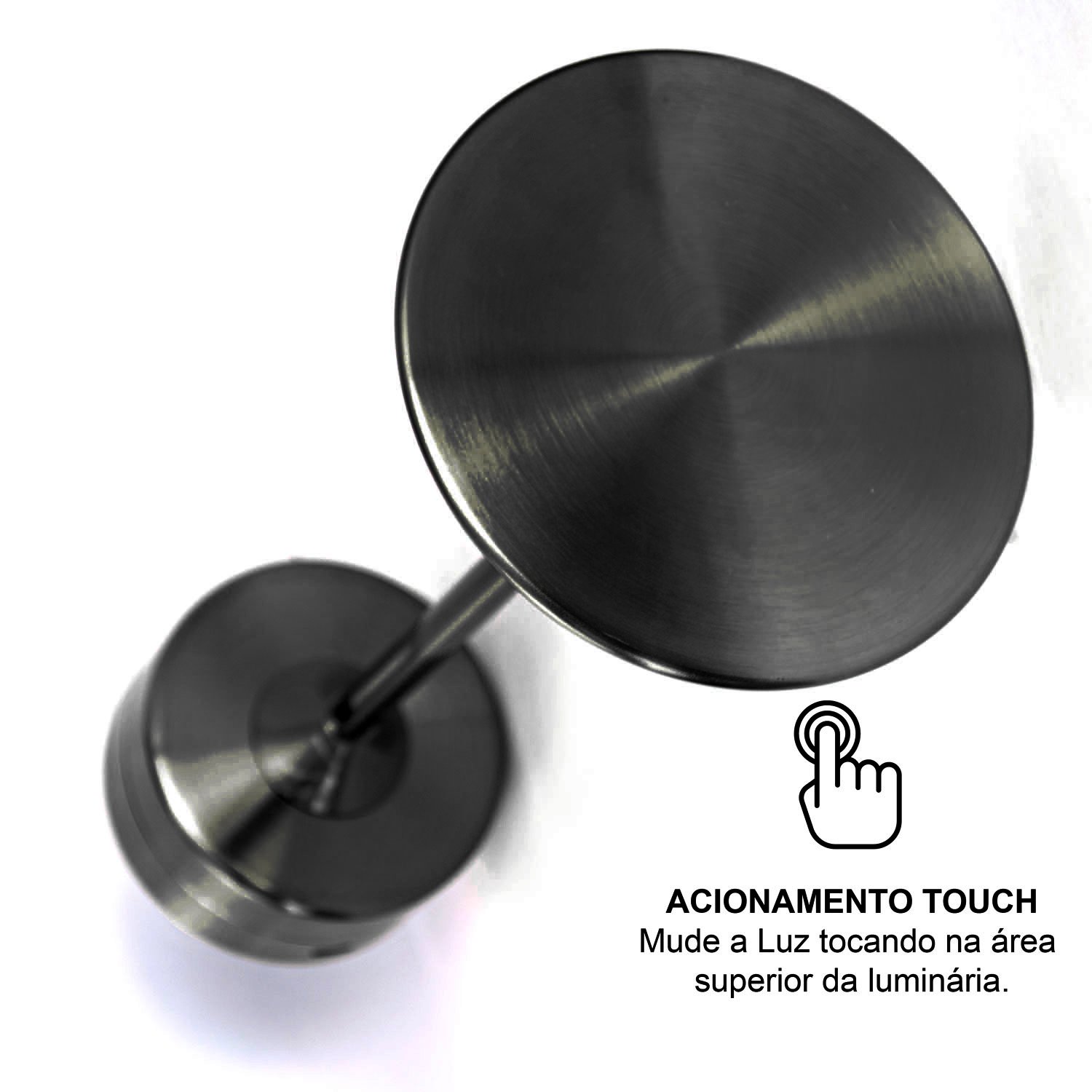 Dimerizador: É possivel ajustar a luminosidade da luminária, mantendo a mão sobre a mesma.