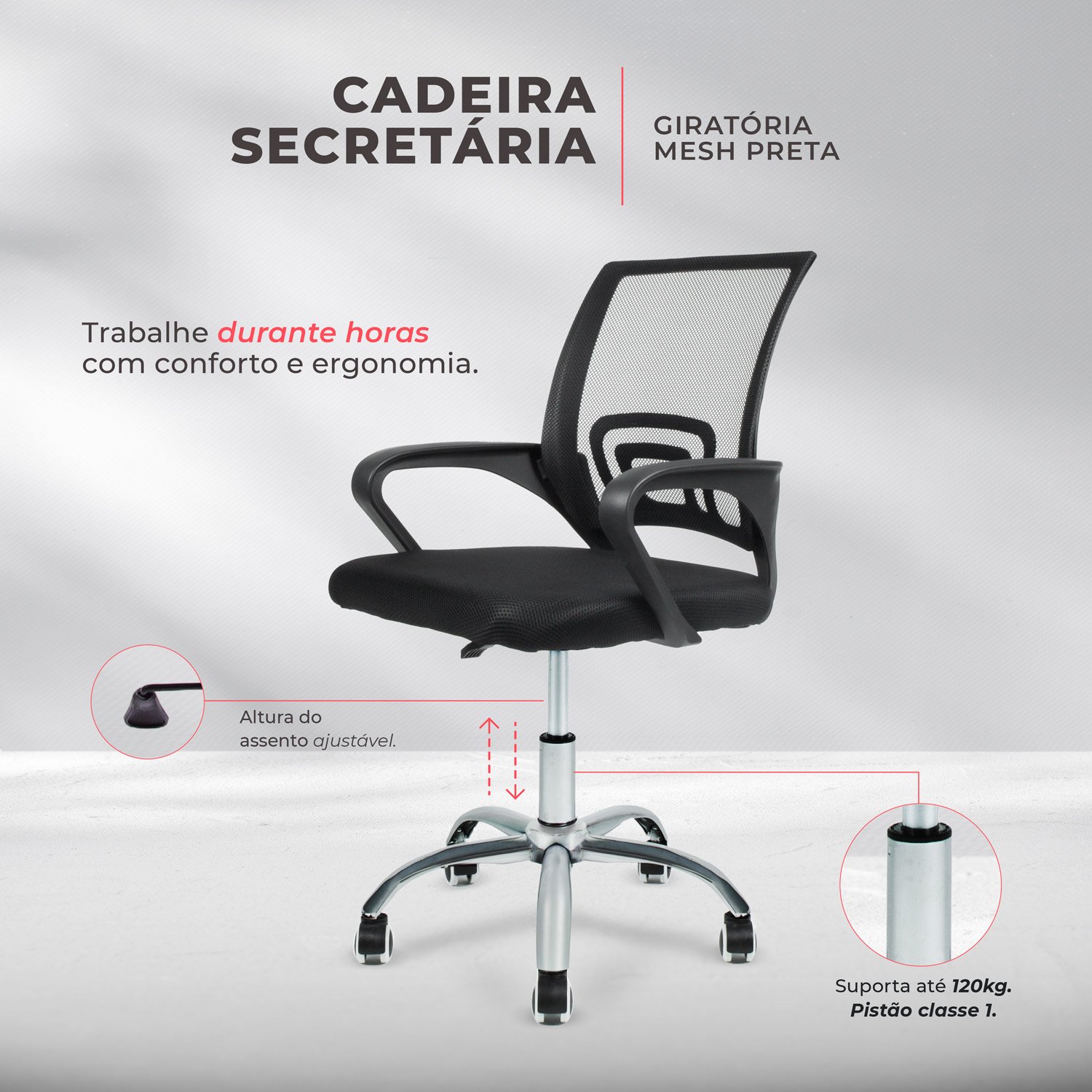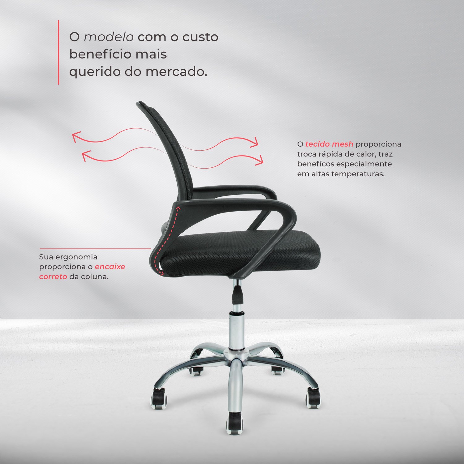 A Cadeira Escritório Executiva Giratória Best Chair Mesh é perfeita para o seu escritório, seja home office ou na empresa, ou até para demais estabelecimentos executivos. Esse modelo é versátil, ergonômico e extremamente confortável devido a sua estrutura em plástico resistente e o seu encosto com tecido em Mesh que faz com que o assento se adéque ao seu corpo.